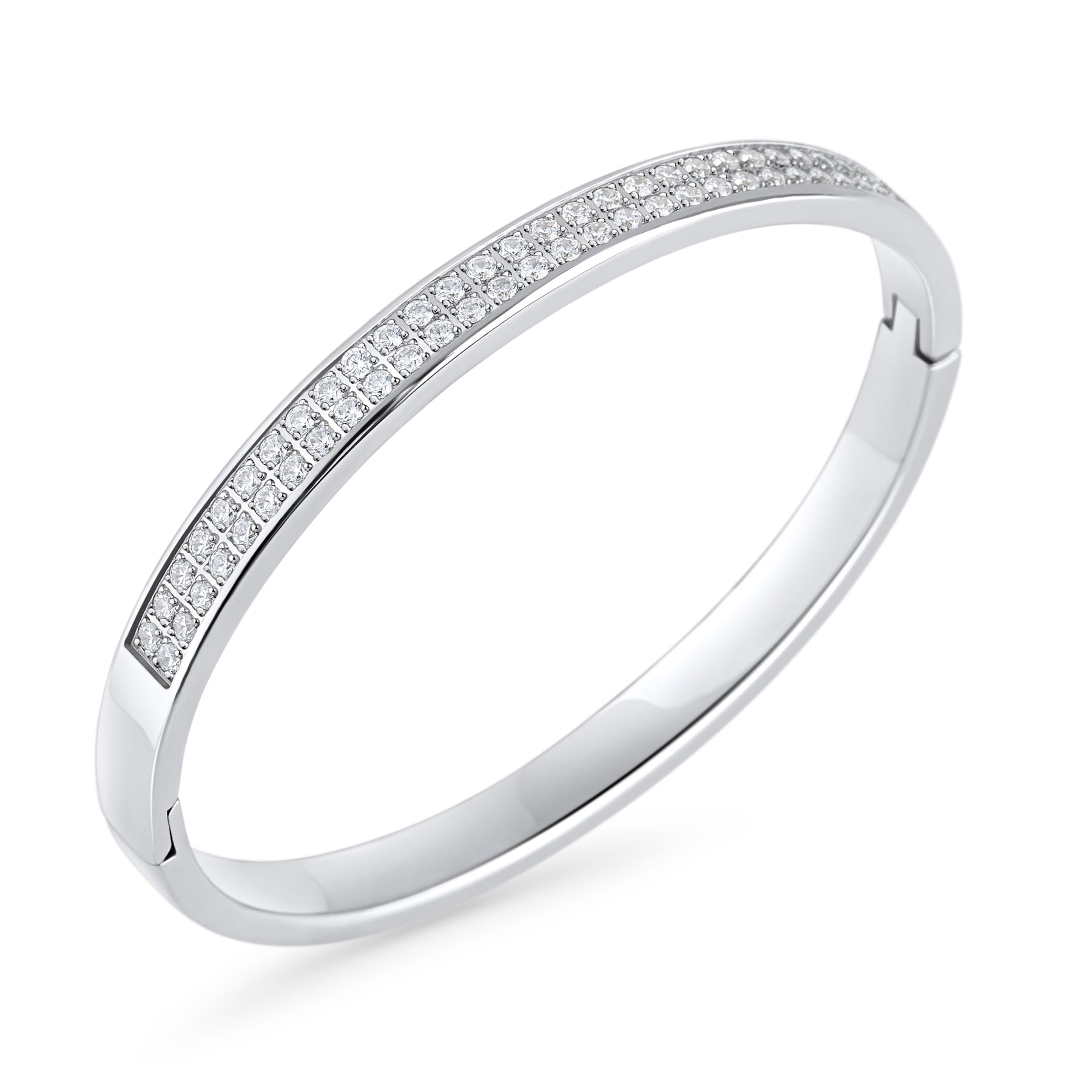 This rigid bangle captures light with grace, creating a refined brilliance that enhances your style with a touch of timeless sophistication.
