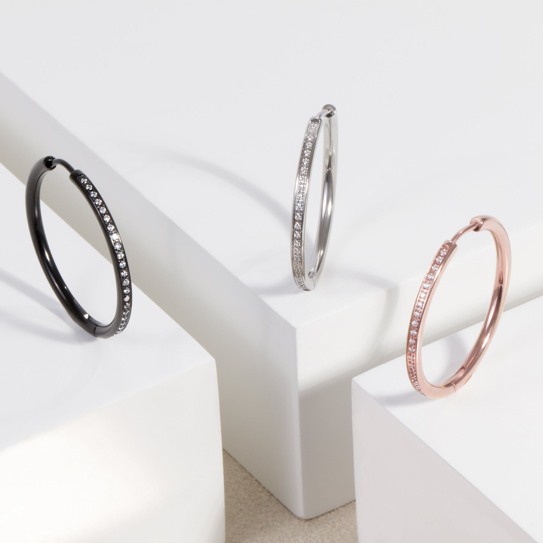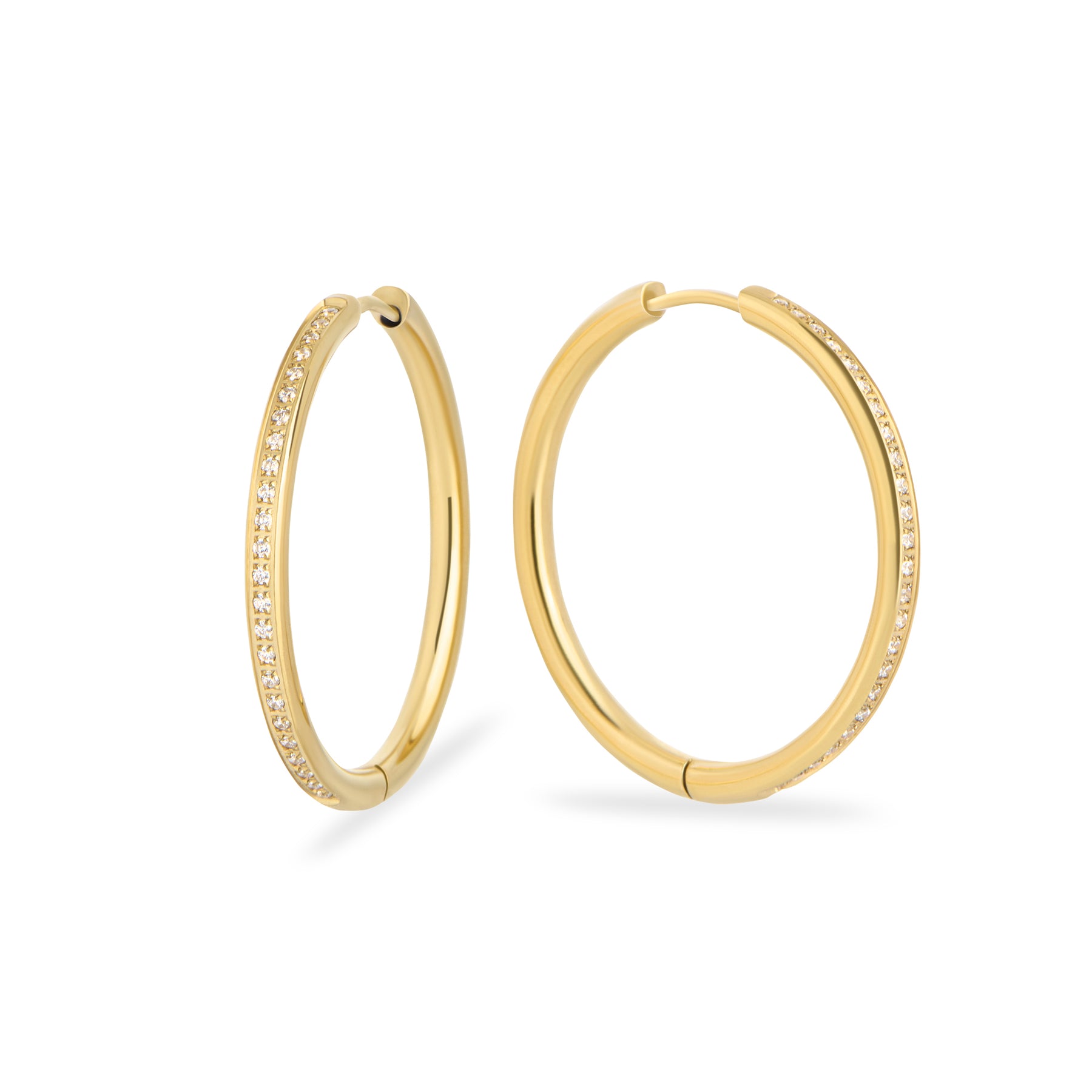 Stainless thin half eternity hoop earrings