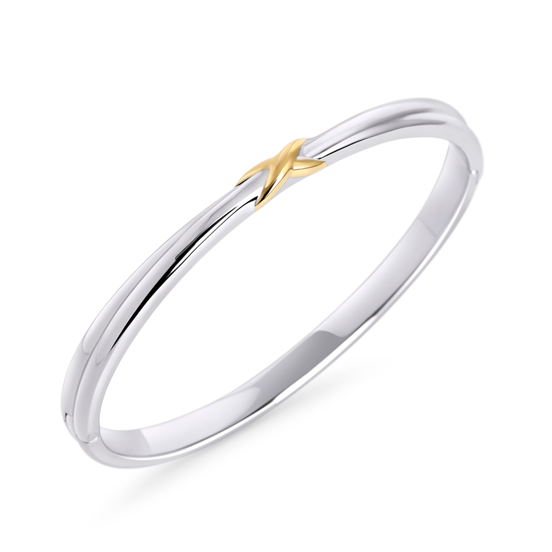 This X-shaped bangle bracelet represents harmony between duality and unity. Its refined two-tone design celebrates your natural elegance while highlighting your boldness in blending modernity with tradition.