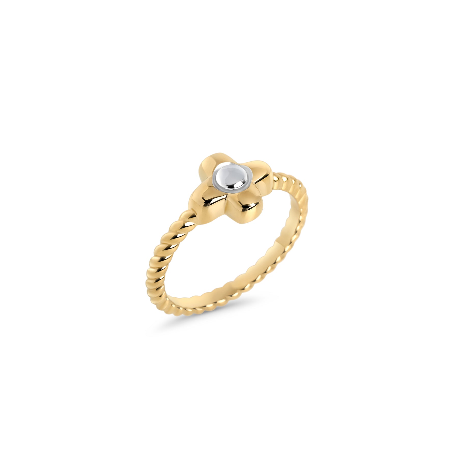 Regular price $50.00 CADThe Eclor Ring features an elegant twisted band with a delicate two-tone flower, symbolizing beauty, harmony, and femininity. Every detail is a subtle reminder of your inner strength and the light you bring into the world. A piece to wear as a daily talisman to shine with elegance and confidence.