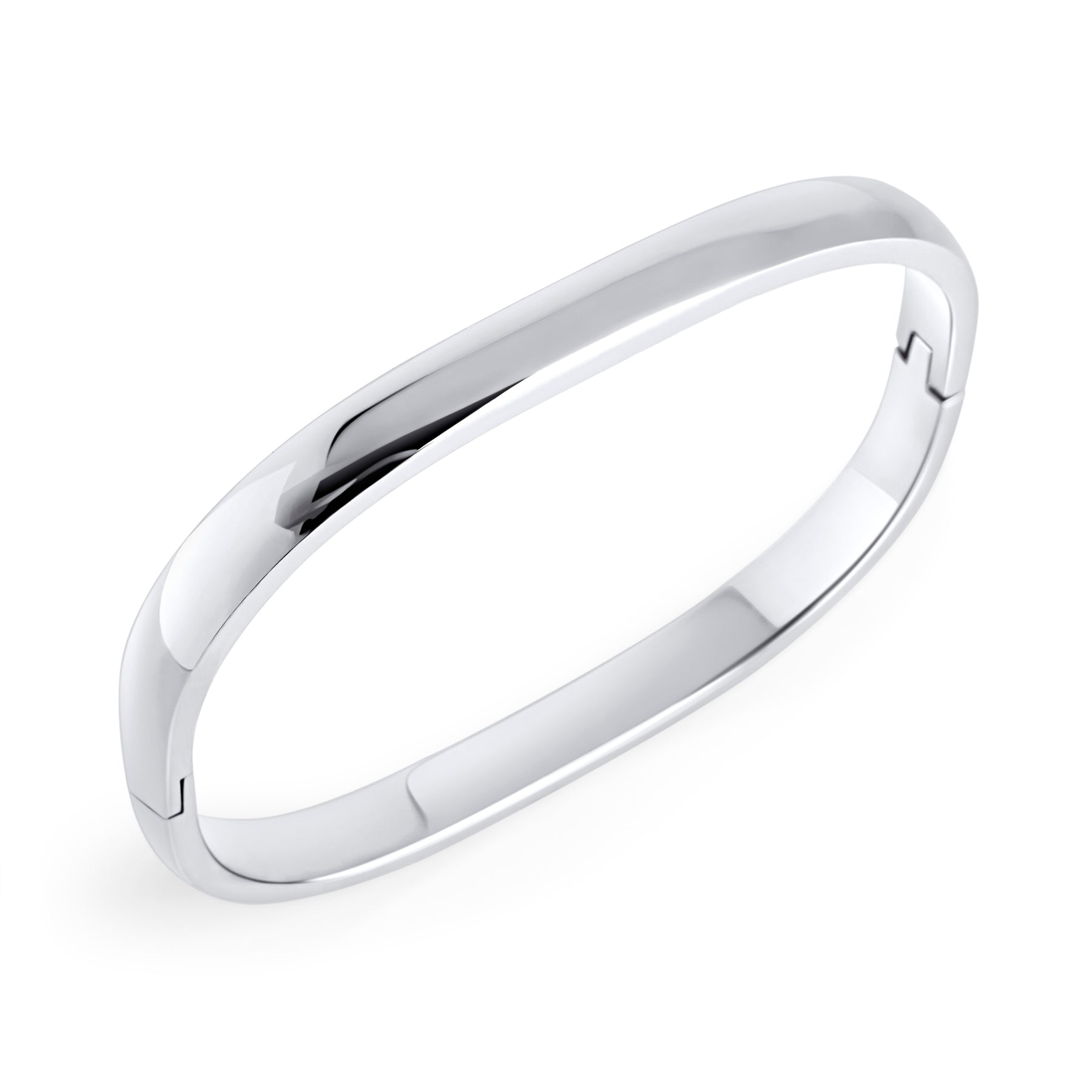 A square-shaped, rigid bangle with a sleek, modern design. A distinctive piece that adds a refined, contemporary edge to any look.